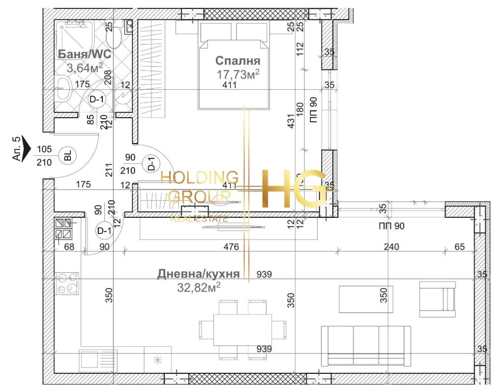 Апартамент 5 в сграда , етаж 2, квадратура 79.37 кв.м.