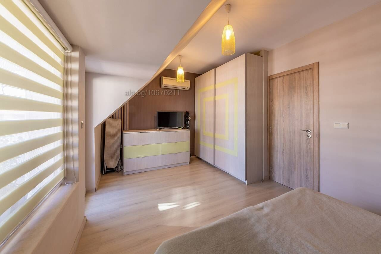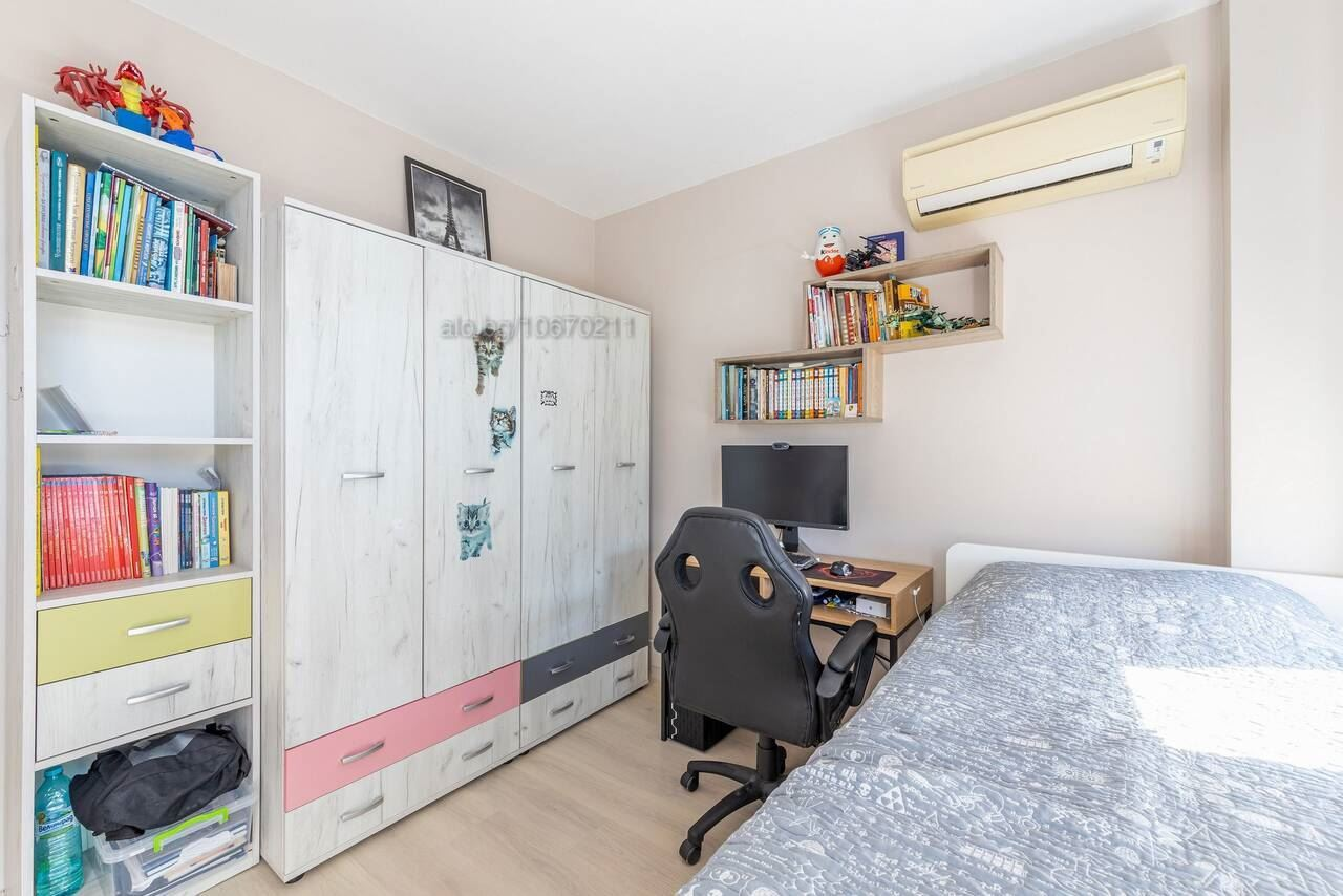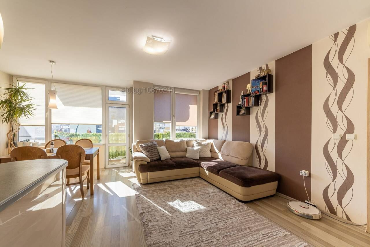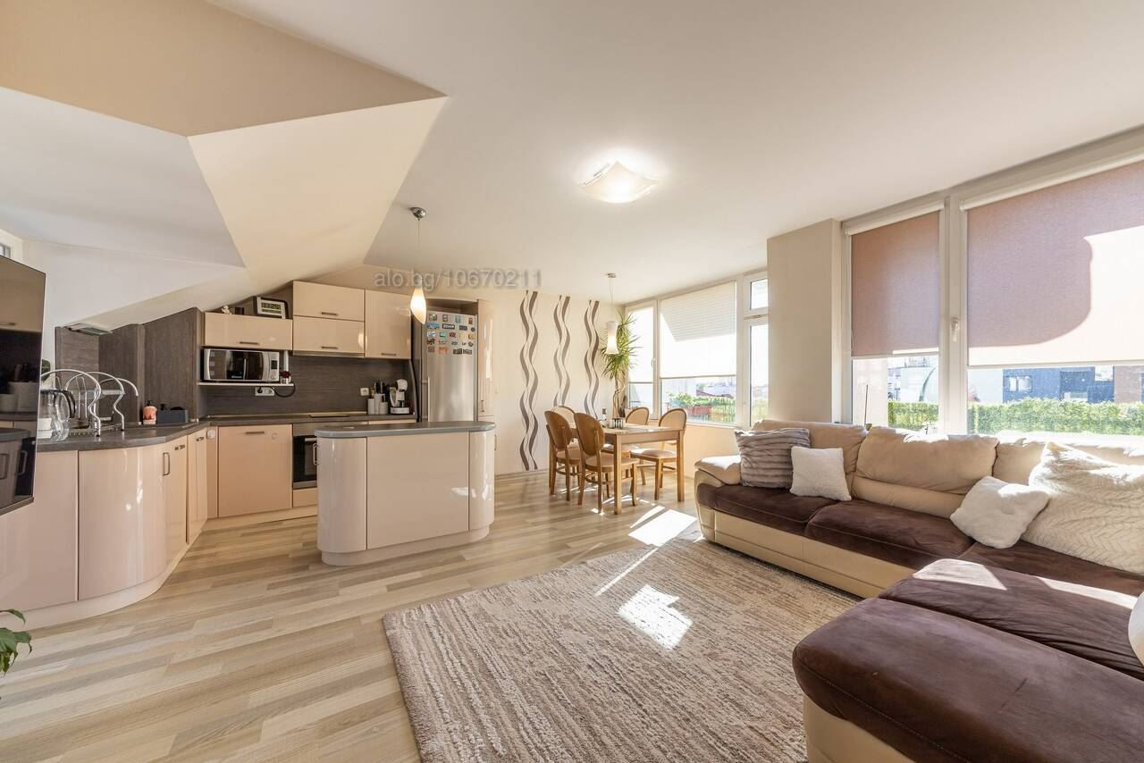 Предлага се за продажба стилно обзаведен тристаен апартамент в Цветен квартал, в близост до Първа Езикова Гимназия, Варна. Имотът е с площ от 125кв и е разположен на четвърти етаж в пет етажна тухлена сграда с асансьор. Апартаментът се състои от: функционален дневен тракт с кухненски бокс, родителска спалня, детска стая, баня с тоалет и три тераси. Прилежащо избено помещение. Жилището е много светло и слънчево, с изложение Юг/Североизток. Статут – Апартамент Имотът е в отлично състояние и се продава обзаведен и оборудван във вида на снимките. Сградата е с асансьор, добре поддържани общи части и контролиран достъп. Паркира се свободно в междублоковото пространство. Районът е с много добре развита инфраструктура – в близост до ОУ „Ангел Кънчев“, Първа Езикова Гимназия, супермаркет Била, Детска ясла“Роза“, аптеки, заведения, спирки на градски транспорт.