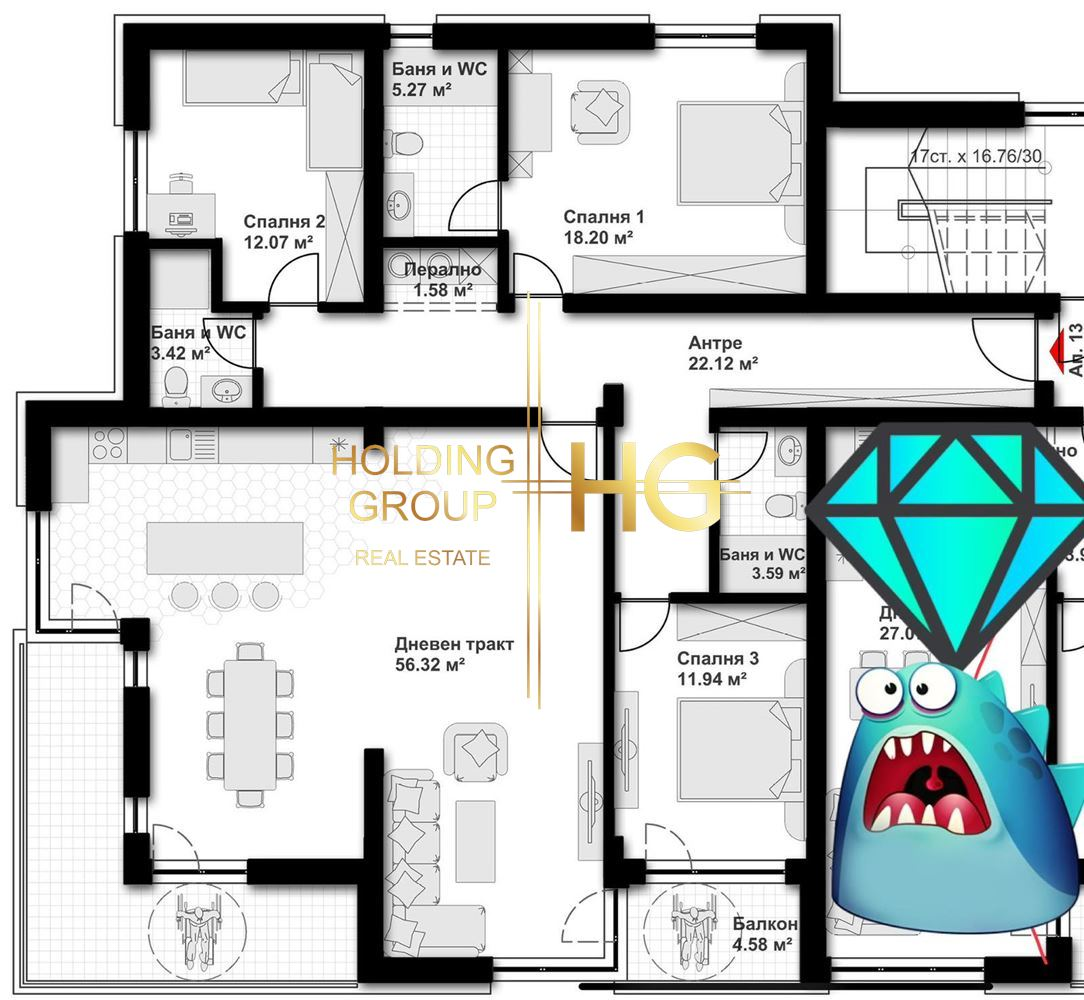 HOLDING GROUP Real Estate представя четеристаен апартамент в кв.Владиславо – в района на Джъмбо