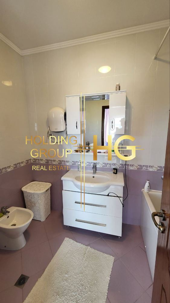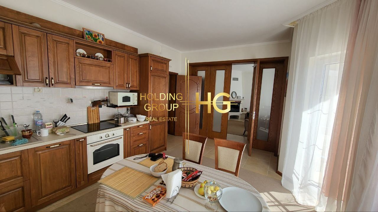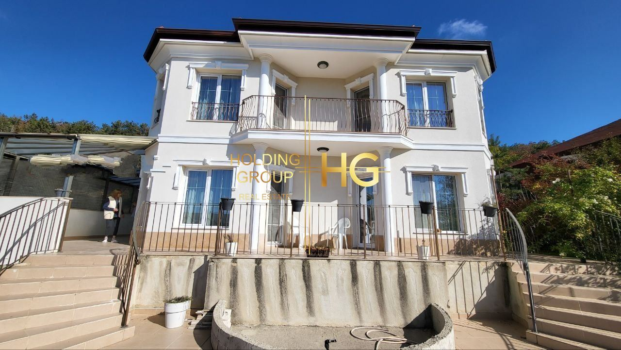 Къщата е с РЗП 200 м². Построена през 2016 г., с просторен двор 865 м², гараж 26 м² и паркинг 150 м². Къщата разполага с 3 спални, 3 бани, напълно оборудвана кухня, камина с локално отопление, климатик Daikin. Имотът е с трифазен ток, вода с резервоар, септична яма + централна канализация. Панорамна гледка към морето и града. Спокойно и озеленено място, подходящо за целогодишно живеене. Част от мебелите остават по договаряне.