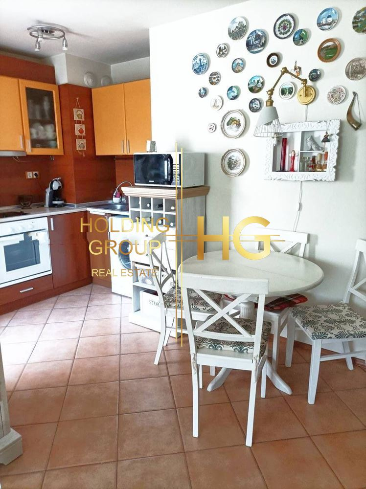 Състои се от: входно антре, дневна с кухненска част и трапезария с излаз на панорамна тераса, спалня, комбиниран санитарен възел. Имотът се предлага обзаведен и оборудван, подходящ както за собствено ползване, така и за отдаване под наем. Към апартамента има маза. Имотът е много светъл и топъл с югозападно изложение.