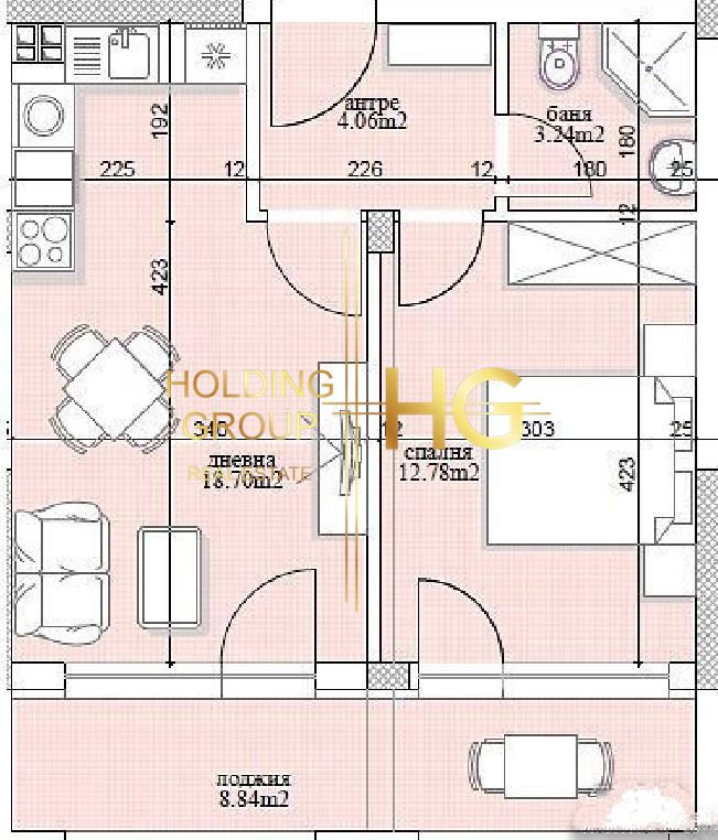 Състои се от: входно антре, дневна с кухненски бокс, спалня, тераса, комбиниран санитарен възел. Апартаментът ще бъде издаден с шпакловани и боядисани стени и положен ламинат във стаите и коридор. Към апартамента има и маза.