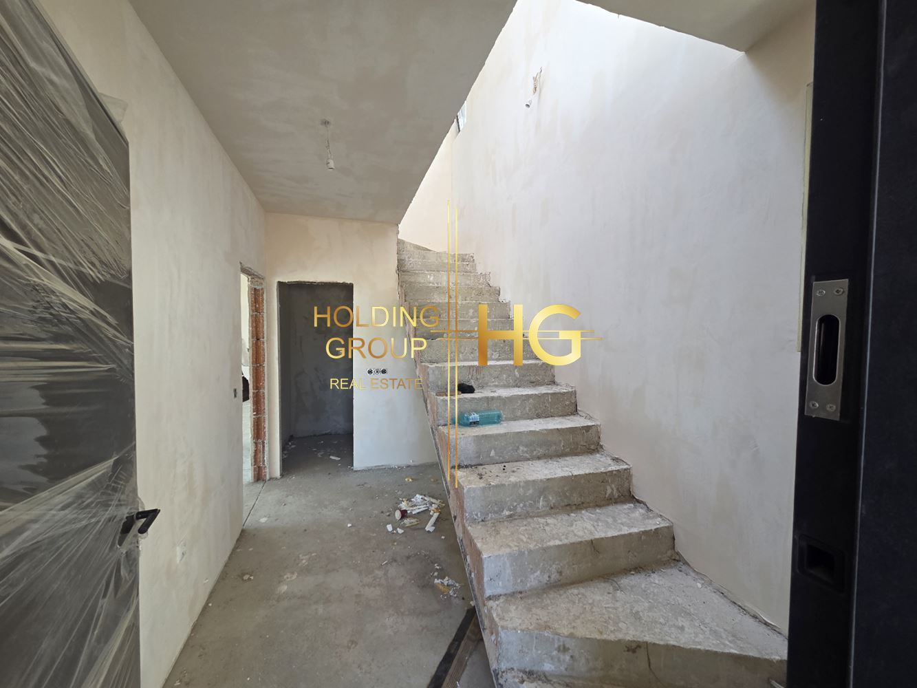 HOLDING GROUP real estate представя на Вашето внимание двуетажна новострояща се къща, с модерна визия в м-ст Акчелар. Ситуирана е в парцел с площ от 500 кв.м., а разгънатата й застроена площ е 162 кв.м. Разпределението е следното: