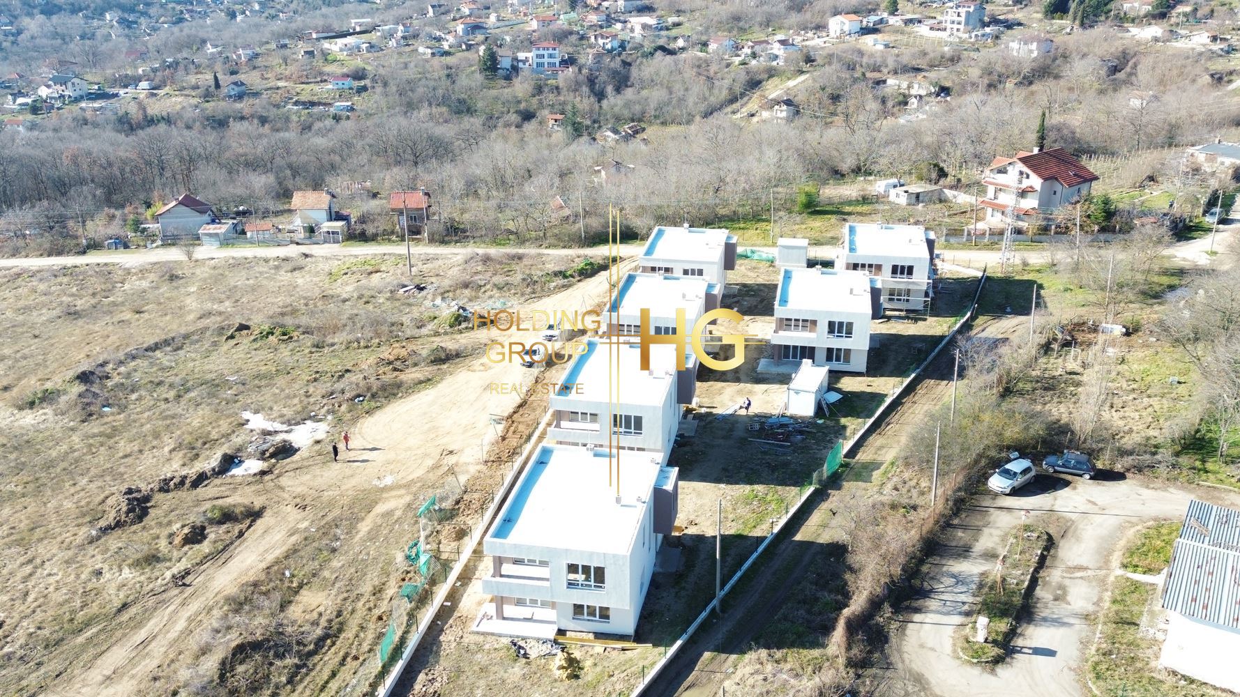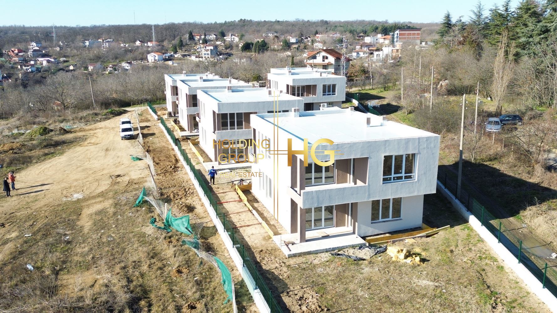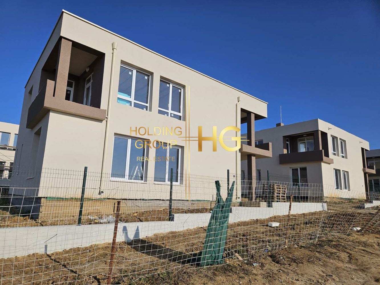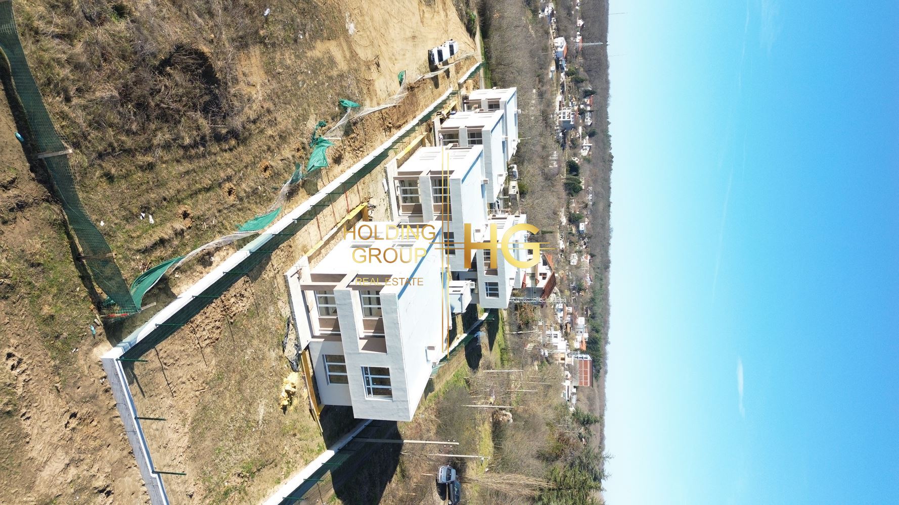 HOLDING GROUP real estate представя на Вашето внимание новострояща се къща в м-ст Боровец Юг. Върху парцел с площ от 500 кв.м. се изгражда този чудесен дом с разгъната застроена площ от 200 кв.м. Ситуиран е на два етажа със следното разпределение: На първи етаж – антре, килер, сервизно помещение, просторен дневен тракт / 56,50 кв.м./ с кухненска част / 17,60 кв.м./ с излаз на веранда / 14 кв.м./. По вътрешни стълби се стига до етаж две, където са разположени коридор, три просторни спални / едната със собствен санитарен възел/ с излаз на балкон, кабинет и баня с тоалетна. Къщата е част от комплекс, състоящ се от шест идентични къщи, всяка със собствен двор и паркомясто. Ще бъде изградена обща септична яма с пречиствателна станция. Красива морска панорама. Без такса поддръжка. Възможност за избор на къща. На 150 м от главен път, автобусна спирка, магазини…