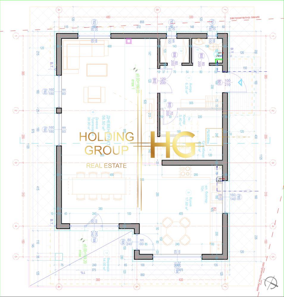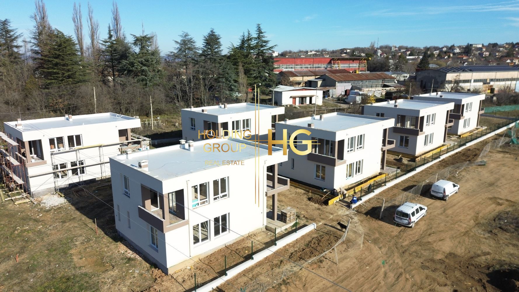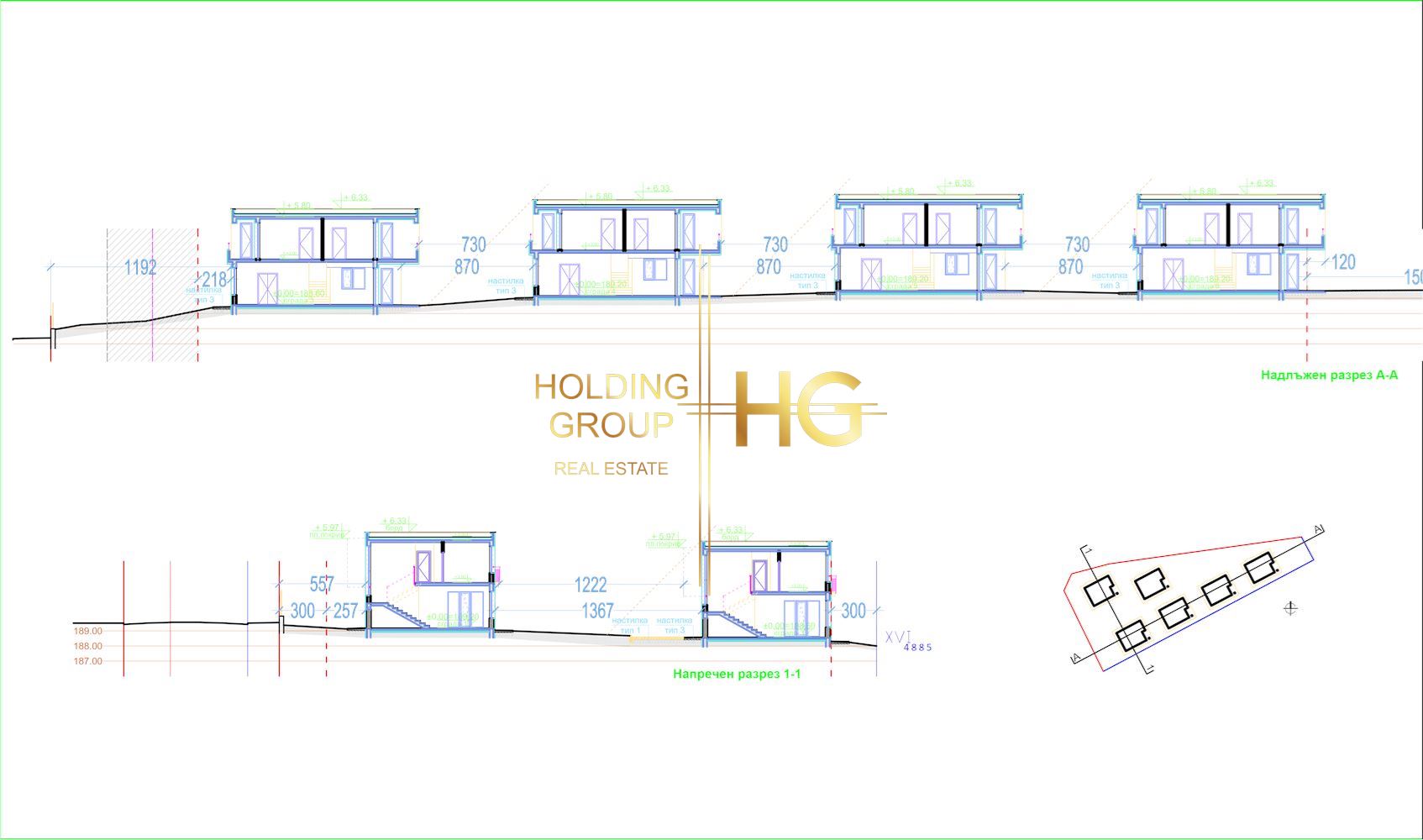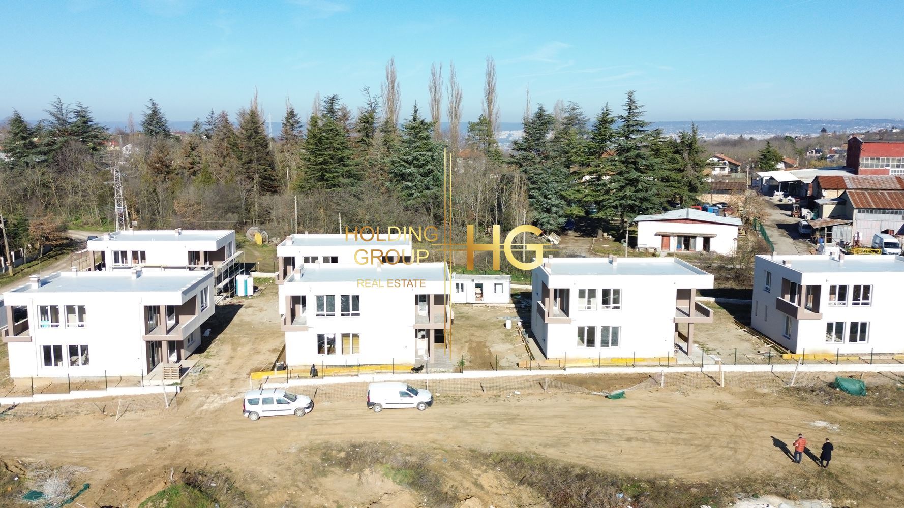 HOLDING GROUP real estate представя на Вашето внимание новострояща се къща в м-ст Боровец Юг. Върху парцел с площ от 500 кв.м. се изгражда този чудесен дом с разгъната застроена площ от 200 кв.м. Ситуиран е на два етажа със следното разпределение: На първи етаж – антре, килер, сервизно помещение, просторен дневен тракт / 56,50 кв.м./ с кухненска част / 17,60 кв.м./ с излаз на веранда / 14 кв.м./. По вътрешни стълби се стига до етаж две, където са разположени коридор, три просторни спални / едната със собствен санитарен възел/ с излаз на балкон, кабинет и баня с тоалетна. Къщата е част от комплекс, състоящ се от шест идентични къщи, всяка със собствен двор и паркомясто. Ще бъде изградена обща септична яма с пречиствателна станция. Красива морска панорама. Без такса поддръжка. Възможност за избор на къща. На 150 м от главен път, автобусна спирка, магазини…