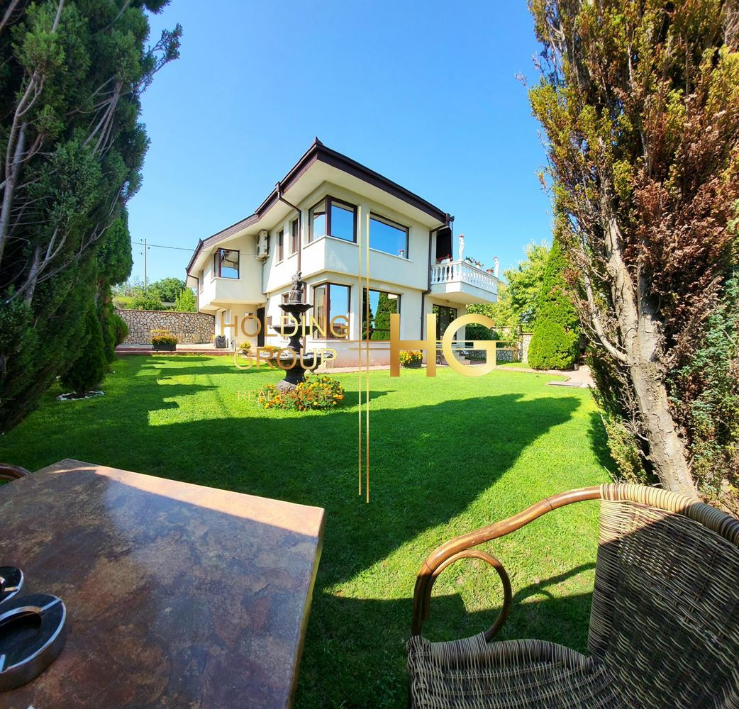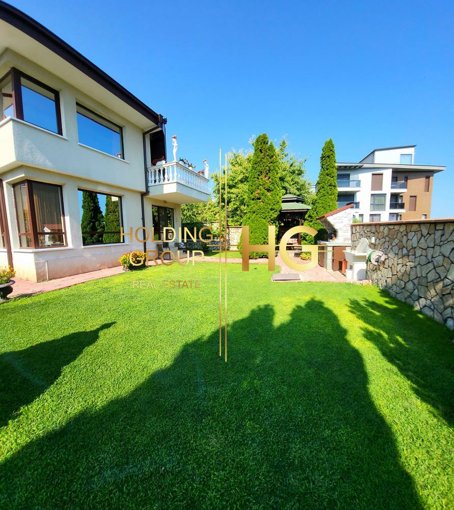 HOLDING GROUP real estate представя на Вашето внимание чудесен фамилен дом в м-ст Евксиноград. В парцел с площ от 900 кв.м. е ситуирана двуетажна къща, напълно обзаведена и оборудвана. На първи етаж са разположени голям дневен тракт с камина, с обособена кухненска част и трапезна зона, от където се излиза на двора, санитарен възел и вътрешно стълбище към вторият етаж. Там са ситуирани три спални, едната със собствен санитарен възел, още един санитарен възел и перално помещение. Дворът е отлично поддържан, добре аранжиран, с беседка, фонтан и барбекю зона. Наличен е двоен гараж и места за паркиране.