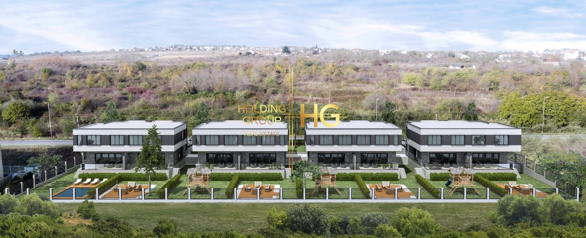 Къщата е част от комплекс от осем къщи, всяка с прилежащ двор в реална съсобственост от около 250 кв.м. и с по две прилежащи паркоместа. Ще бъде завършена по БДС – положени финна шпакловка и замазка, окачени фасади, декоративен камък, дворът ще бъде ограден с жив плет, а пътеките ще бъдат изградени. Пред А 16.