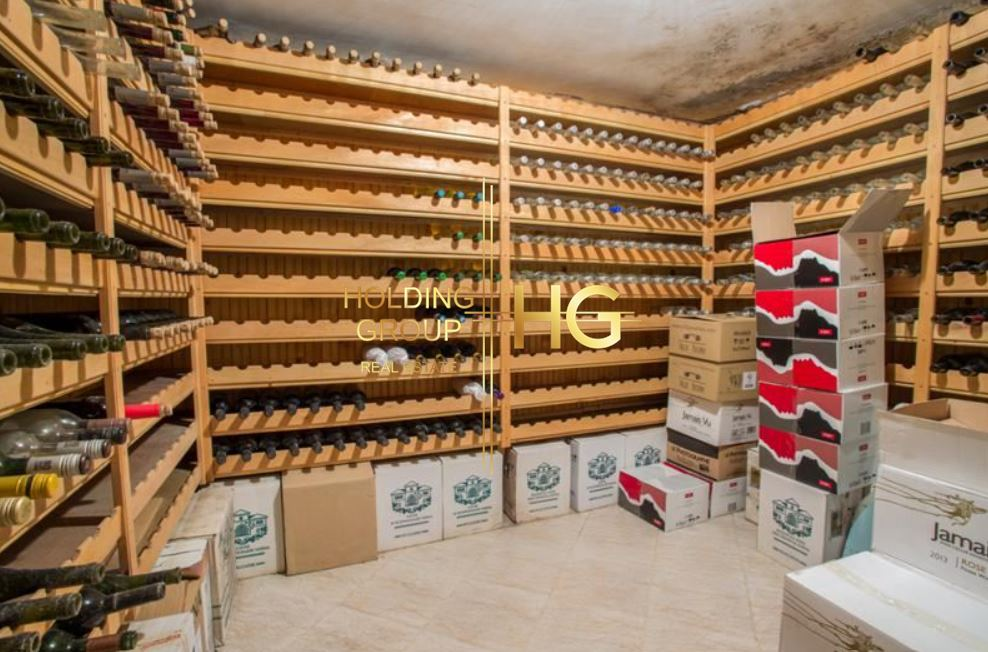 Имотът разполага с избено помещение с две отделения, едното, от които е за съхранение на 1000 бр. бутилки вино. Четири гаража, басейн с джакузи. Дворът е поддържан чудесно, с фонтан, цветна градина и вечно зелени храсти. Барбекю зона.
