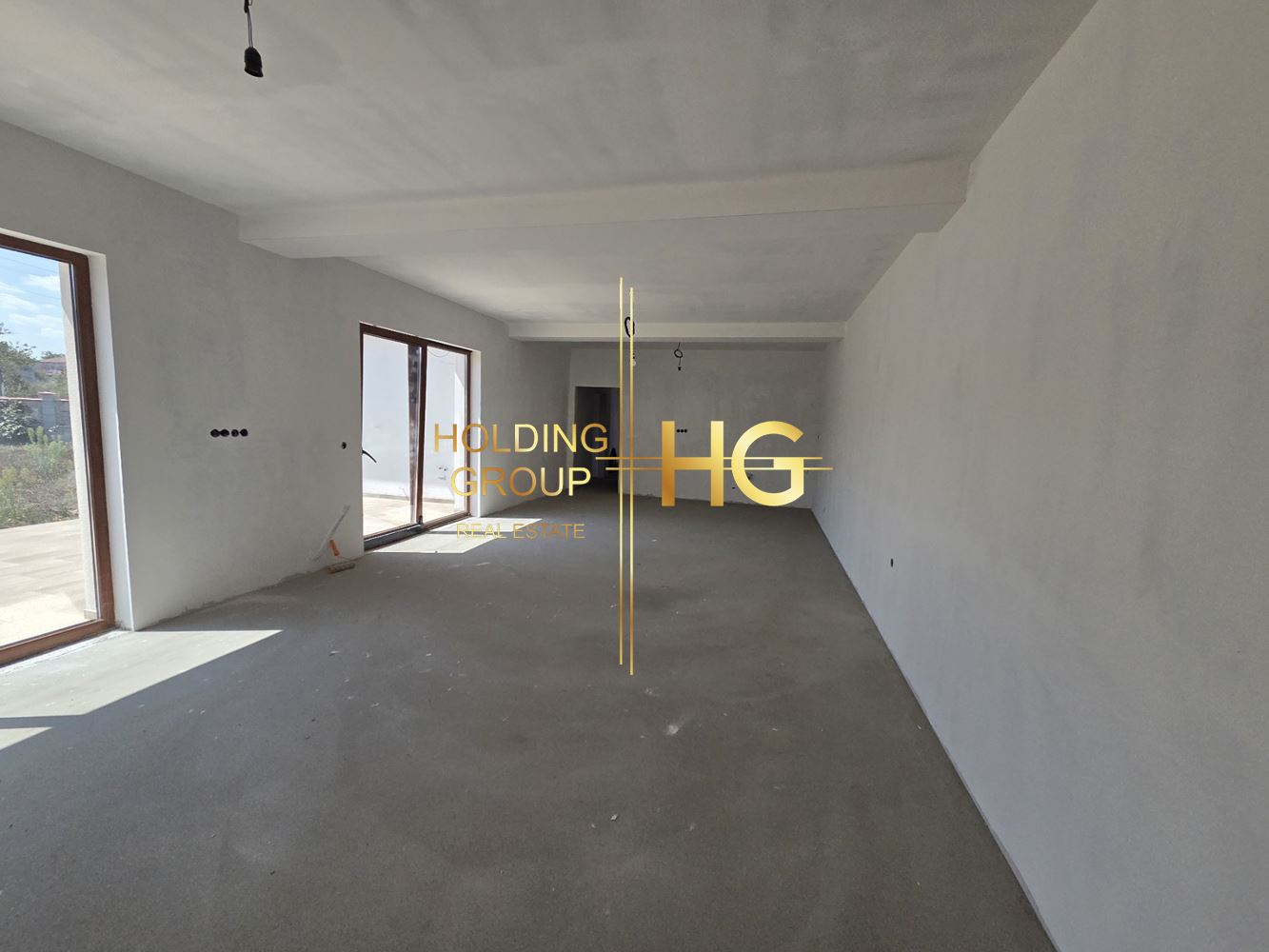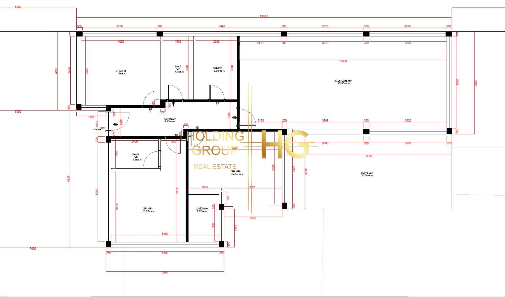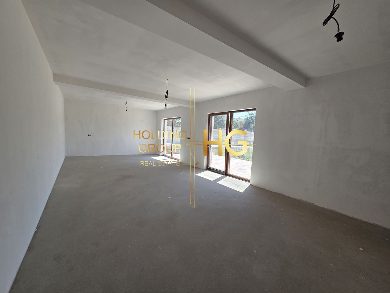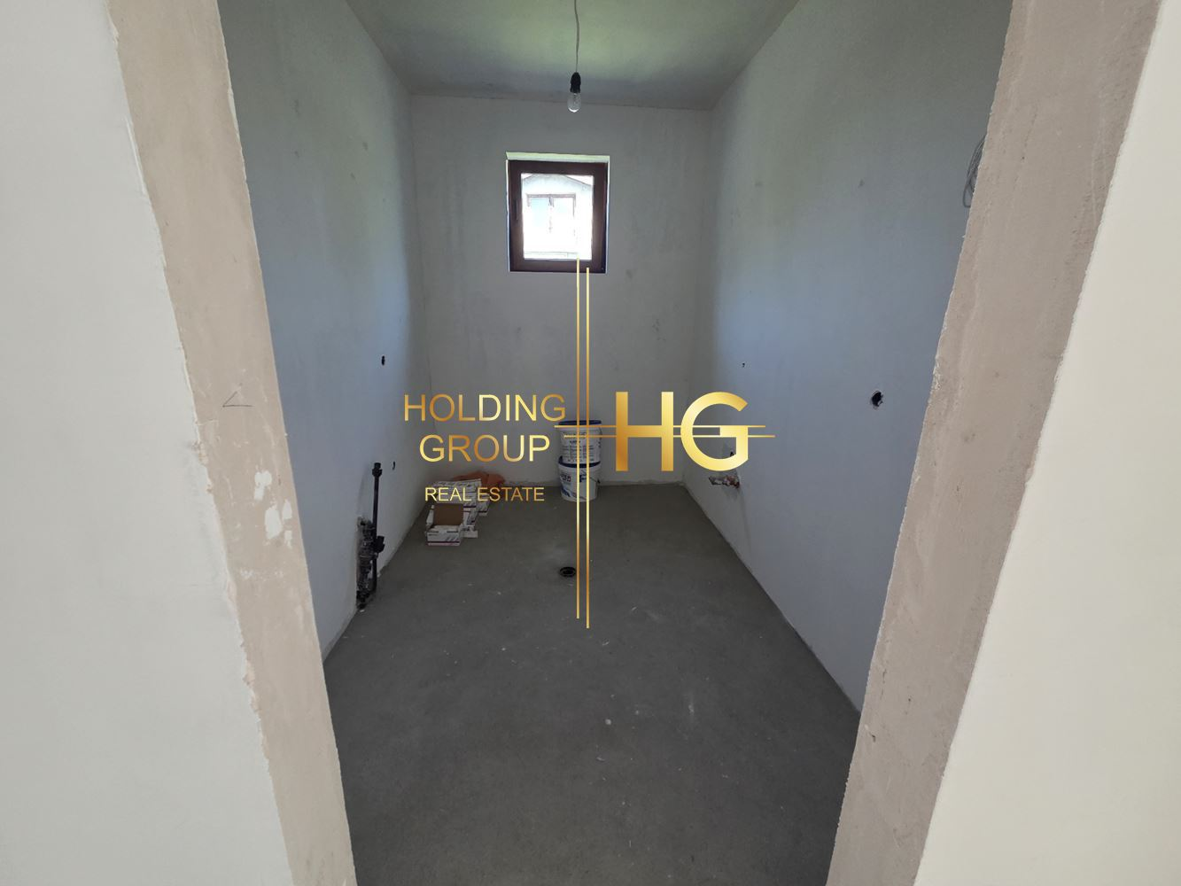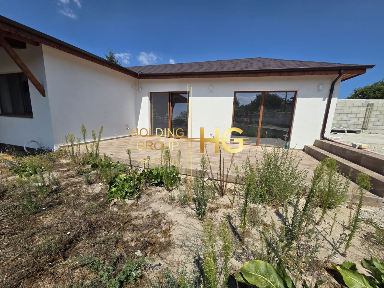 коридор, просторна дневна с площ от 49,35 кв.м., с излаз на голяма веранда /31,56 кв.м/, спалня 14 кв.м., втора спалня с площ от 15,77 кв.м със санитарен възел и дрешник, трета спалня с площ от 16,36 кв.м , килер и още една баня с тоалетна. Ще бъдат изградени гараж и две паркоместа. При желание от страна на новите собственици може да се изгради басейн, сондаж и да бъдат прекарани кабели за фотоволтаици. Къщата се издава завършена до ключ с напълно оборудвани бани. .
