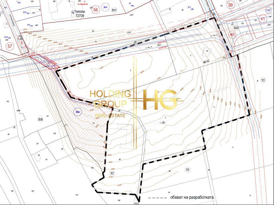HOLDING GROUP real estate представя на Вашето внимание урегулиран поземлен имот с площ от 809 кв.м. Намира се в землището на с. Тополи. Парцелът е с влязъл в сила ПУП, ПРЗ и е подходящ за построяването на фамилна къща. В съседство същият собственик предлага още 9 парцела. От всички тях се открива невероятно красива панорама към езерото и град Варна. Ток, вода и канализация в непосредствена близост. Ако желаете да се наслаждавате на тишина, чист въздух и красива гледка, а в същото време да сте на 10 мин. път с кола до града, моля обадете се и цитирайте кода на офертата.