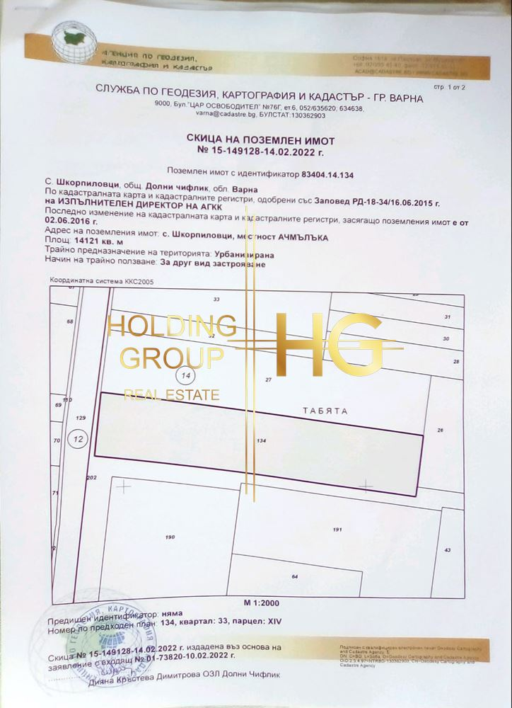 УРЕГУЛИРАН ПОЗЕМЛЕН ИМОТ, разположен на метри от плажа на к.к. Шкорпиловци /Лонг бийч резорт/ и на 38 км от град Варна.Имотът е с площ от 14 дка, равен, с правоъгълна форма и с ЛИЦЕ НА АСФАЛТОВ ПЪТ, ток и вода. Намира се зад съществуващ комплекс от бунгала и в непосредствена близост до SEA DUNE MOTEL .Парцелът е със сменен статут за жилищно строителство и разполага с ПУП със следните показатели: кинт – 1.5, плътност – 30 %, височина – до 15 метра. Подходящ е за строеж на хотел, апартаментен комплекс с магазини, ресторант, бар, фитнес, басейн, гаражи, както и за комплекст от вили.В новия ПУП на община Шкорпиловци е предвидено построяването на общински път, който минава по южната граница на имота и води до плажа и така разстоянието до морето става 80 м, а от другата страна на парцела /по асфалтовия път/ – 150 м.Шкорпиловци е малко курортно селище на Българското Черноморие, разположено на 38 км южно от морската столица на България – град Варна и на 30 км северно от курорта Бяла. Селото лежи само на стотина метра от един от най-хубавите плажове на морето с най-дългата плажна ивица – 13 км. Курортната зона на Шкорпиловци е единствената останала незастроена плажна ивица с чудесна природа, съчетание от дъбови и борови гори.Цена: 59 евро/кв.м.