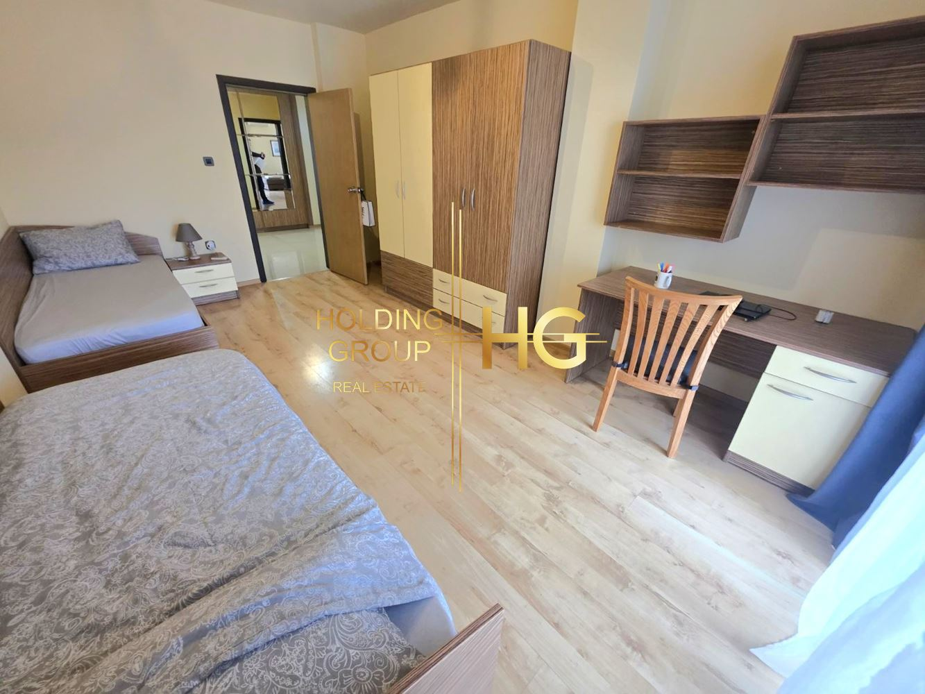 Разпределението включва просторна дневна с кухня и трапезария, две самостоятелни спални, от които едната с гардеробна, комбинирано санитарно помещение, втора тоалетна и балкон. Светлите помещения и функционалната организация на интериора създават усещане за простор и уют през целия ден. В сградата има асансьор, което гарантира удобен и лесен достъп до жилището. Имотът съчетава престижно местоположение, комфорт и потенциал за запазване на стойността във времето – рядка находка на пазара във Варна.