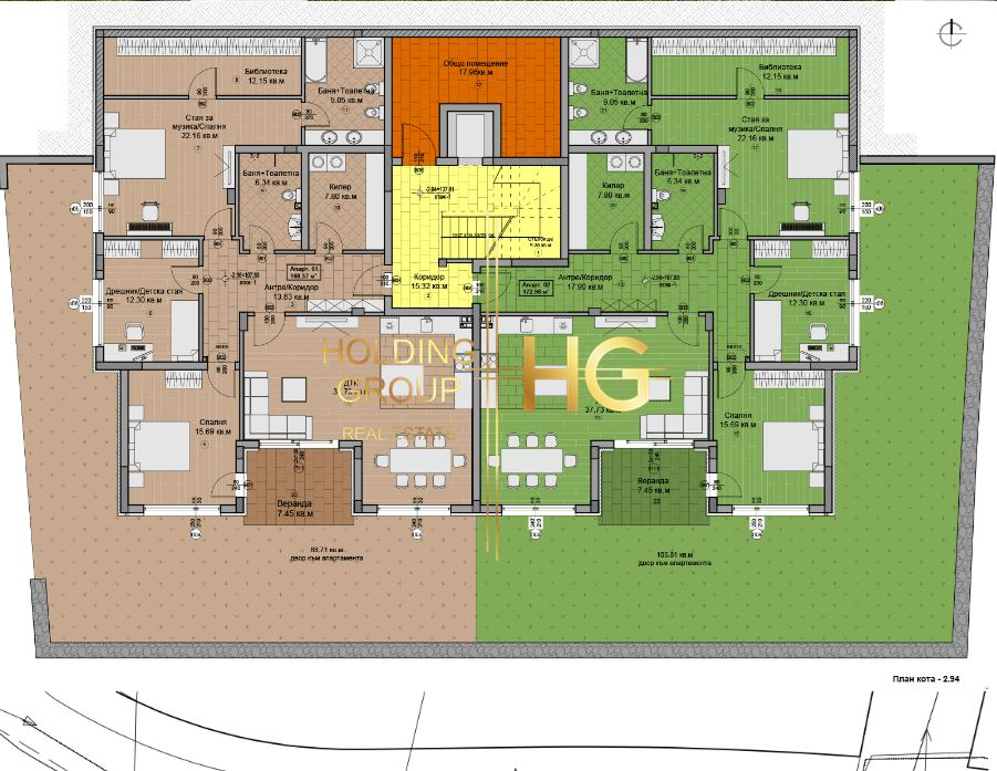 HOLDING GROUP real estate представя на Вашето внимание уникален тристаен апартамент в малка бутикова сграда със само 6 апартамента в м-ст Свети Никола. Чистата жилищна площ на имота е 168,37 кв.м. с прилежащ двор от 88,71 кв.м. Ситуиран е на партерен етаж с изложение Юг/Запад и се състои от коридор, просторен дневен тракт с площ от 37,73 кв.м. с излаз на веранда 7,45 кв.м., родителска спалня 22,16 кв.м. като от нея се влиза в библиотека с площ от 12,15 кв. м., собствена баня с тоалетна 9,05 кв.м., детска стая с площ от 15,69 кв.м. с дрешник към нея от 12,30 кв.м. още една баня с тоалетна 6,34 кв.м. и килер 7,80 кв.м. От жилището може да се насладите на прекрасна морска панорама. Сградата в която се намира това бижу е на 3 етажа, с елегантна архитектура и с изчистени линии и кубични форми. Състои се от 6 просторни апартамента с функционални разпределения, за максимален комфорт и уединение, 11 удобни външни паркоместа и озеленен вътрешен двор с места за релакс. За построяването на сградата ще се използват висок клас материали-премиум клас, защото това ще е дом, който говори за стил, не просто жилище, а символ на престиж. Доказан строител, гъвкави схеми на плащане. За повече информация и огледи, моля да се обадите на посоченият телефонен номер и цитирате кода на офертата. Цената е без включено ДДС.